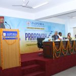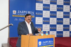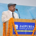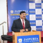 Jaipuria School of Business, Indirapuram, Ghaziabad unveiled ”Prarambh 2018” – a 3-day intensive Orientation Programme for the new batch of PGDM (Post Graduate Diploma in Management) 2018-20. The Chairman of Jaipuria Group of Institutions, Shri Shishir Jaipuria inaugurated the programme and formally announced the commencement of session 2018-20. In his address, he urged the students to acquire skills, competencies and agility in order to sustain in the new era characterized by disruptions. The Guests of Honour, Mr. Naveen Tandon, Director – International External Affairs, AT&T, India and Mr. Rajeev Bhadauria, Director – Group HR, JSPL delivered very inspiring and engrossing speeches while emphasizing on the need of staying up-to-date with the technological advancements and managerial innovations. The Chief-Guest, Major General Sh. Anil Shukla (Retd.) in his address, shared his experience with the new students and talked about how ethics and moral values provide the strong foundation to achieve success in the ever changing world order. Shri VK Malhotra, Member, Board of Governors, enlightened the assembly of students, members of the faculty and invited guests with his words of wisdom while relating very beautifully the present day management with the doctrines enshrined in Bhagwatgita. The Director, Dr. SK Mahapatra delivered the welcome address and emphasized on the need of adopting focused and disciplined approach in life to get success.