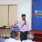 He talked about Goal orientation, making one’s own Goal model, no formal degree is required for innovation and nothing comes from Vacuum. He also discussed about characteristics of new age economy namely: VUCADD World, Life Cycle, Unprecedented changes, Abundance of resources, Open source and freely available knowledge, connected global world, Age of collaboration. Later on the tools of New Age Innovations were discussed such as Capability for rapid photo typing , Failing fast, Co-creation, Collaboration, working in diverse terms, Perceiving change, Dealing with complexity & ambiguity, being responsible citizen, concern for others, Agility, Flexibility, Frugality, Seeking behavior motivation, Childlike quest, engaging, Faith, Fire, Focus, Resilience, Endurance, Passion, Man-Machine Collaboration. He ended up the session with a quote by Atul Sobti, “Nothing happens on its own, except the Death”